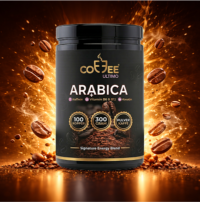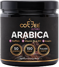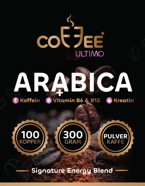 Arabica instant pulverkaffe med koffein, kreatin, aminosyrer, planteekstrakter og B-vitaminer. Coffee Ultimo – Signature Energy Blend er utviklet for deg som ønsker en smakfull kaffe med ekstra energi i hverdagen.